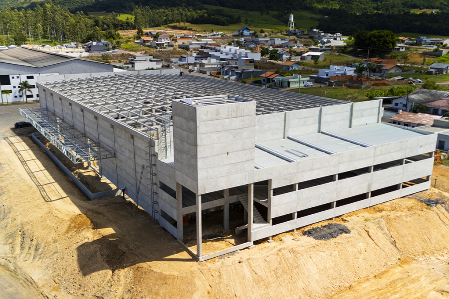 Com mais de 4.000m² de área construída, a nova edificação em Lontras - SC tem fechamento em placas e cobertura com telhas zipadas.